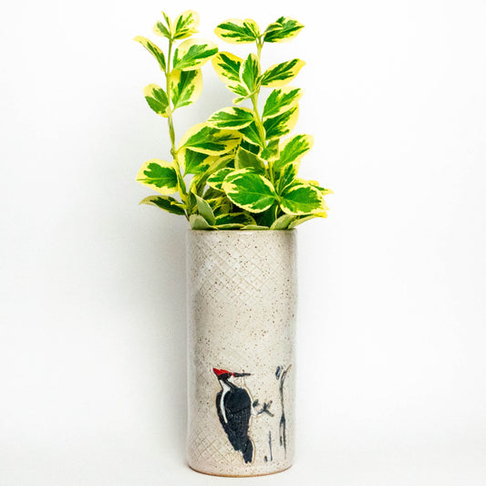 Pileated Woodpecker White Vase