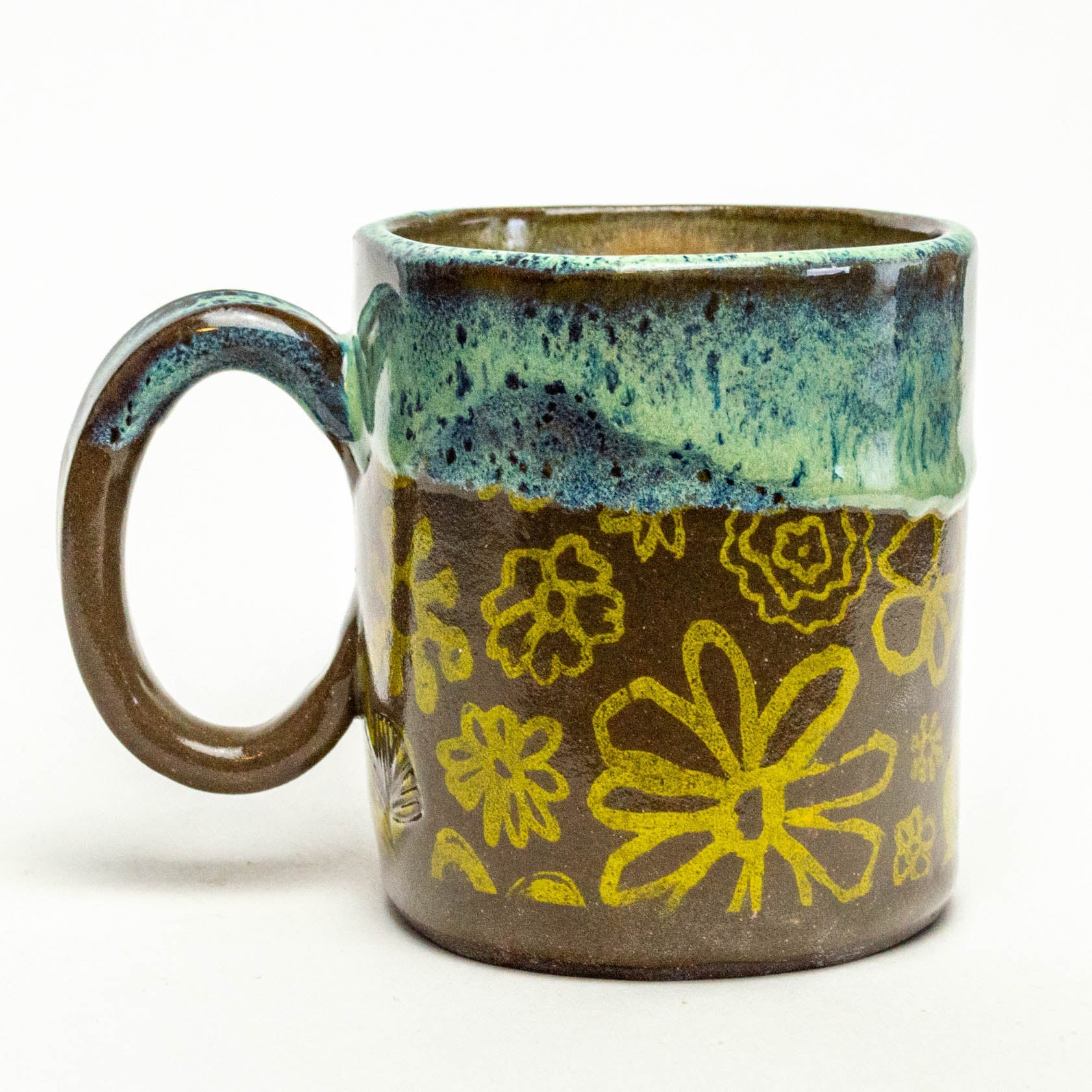 A joyful, earthy mug that brings handmade warmth and floral charm to every sip.