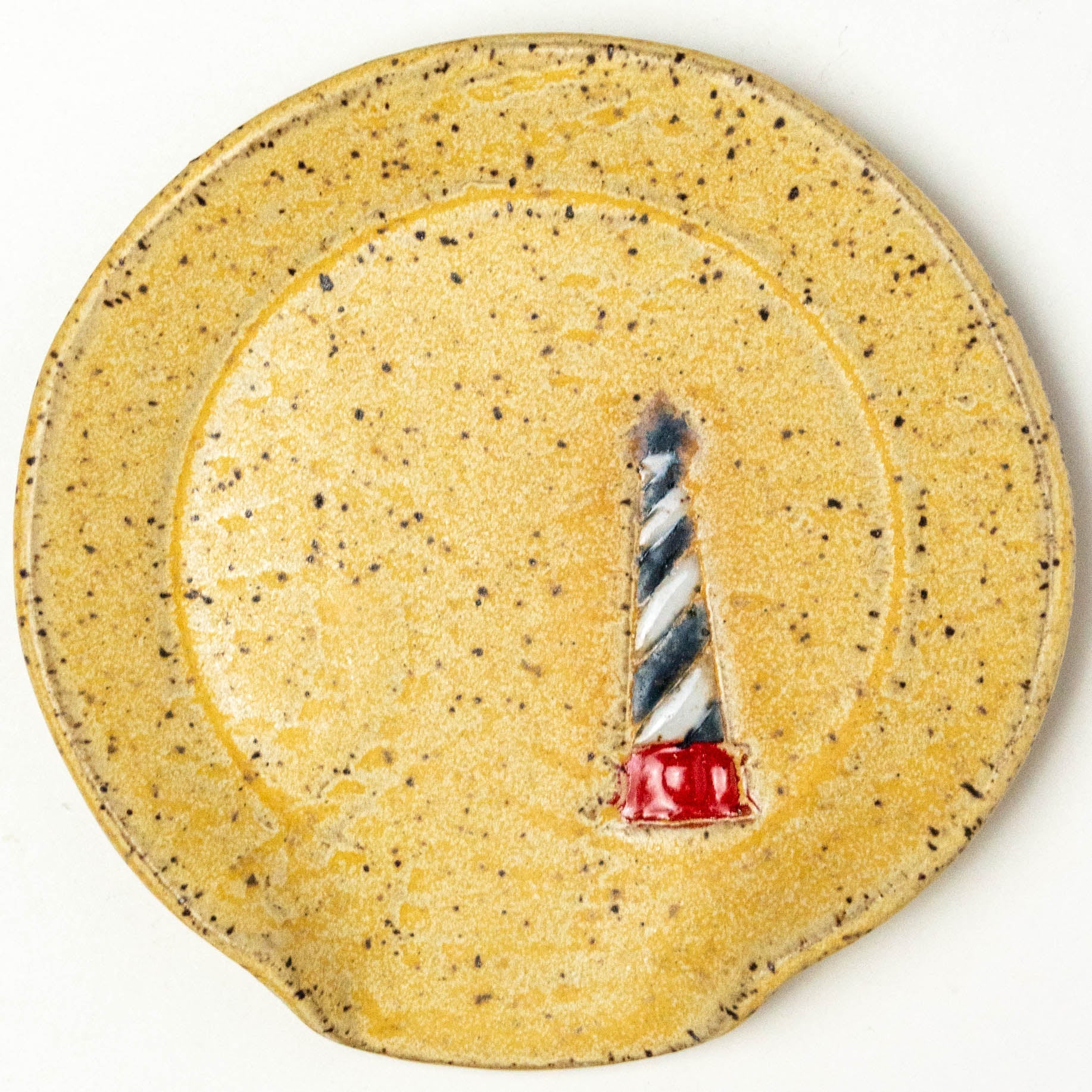This charming stoneware spoon rest features a detailed lighthouse design and is hand-built and hand-glazed with care in Oberlin, Ohio. Measuring approximately 4 1/4 inches wide, it’s the perfect kitchen companion to keep your counters clean while cooking. Food, dishwasher, and microwave safe for everyday use.