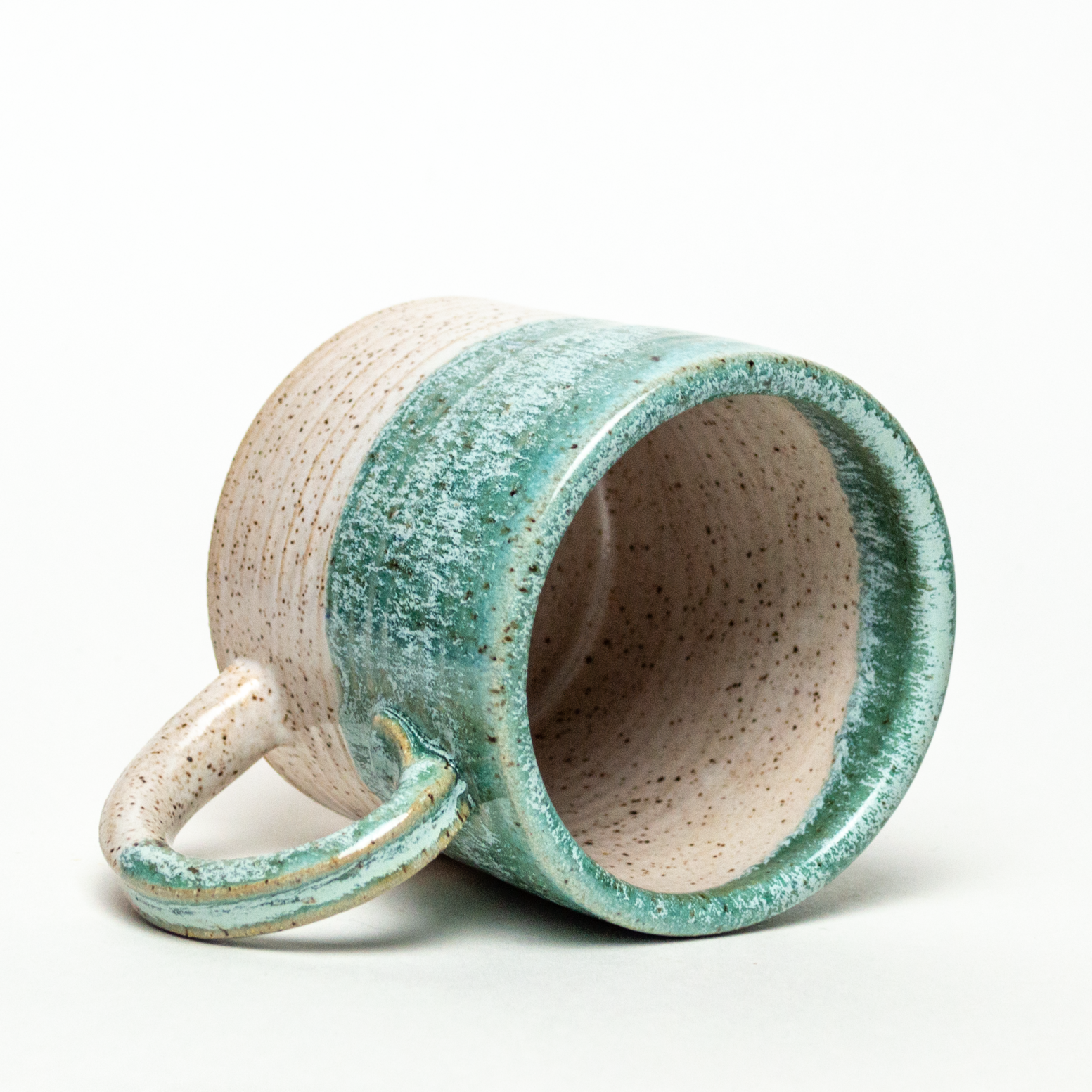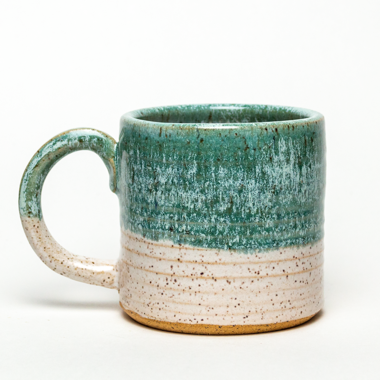 Hand-Thrown Turquoise & White Mug – 12–14 oz.